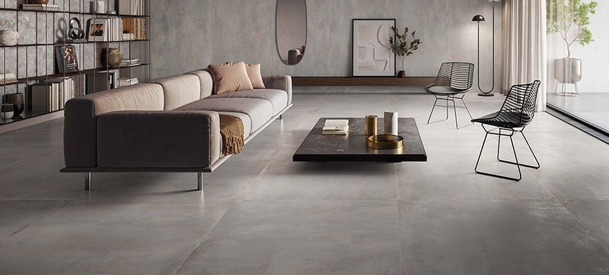 Fusion comes in six colours (Black, Copper, Graphite, Green, Grey, and White), with a natural finish, and in various formats and thicknesses. The 60x60 cm, 60x120 cm, and 120x120 cm formats are 9 mm thick, while the large 120x278 cm format is 6 mm thick. In addition to their sophisticated colours, Fusion tiles stand out for the typical shine of oxidised metal.