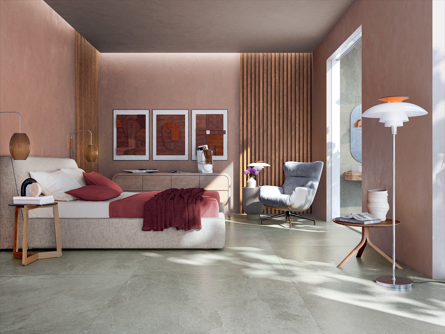 Geos slabs flawlessly capture the authentic appearance of this natural element, meticulously studying and reproducing each detail with precision and care, resulting in a visual experience that embraces a myriad of captivating colour nuances. The surface of Geos is delightfully dynamic, and the texture is enriched by streaks and chromatic shifts created by the merging of slate’s characteristic fissures.