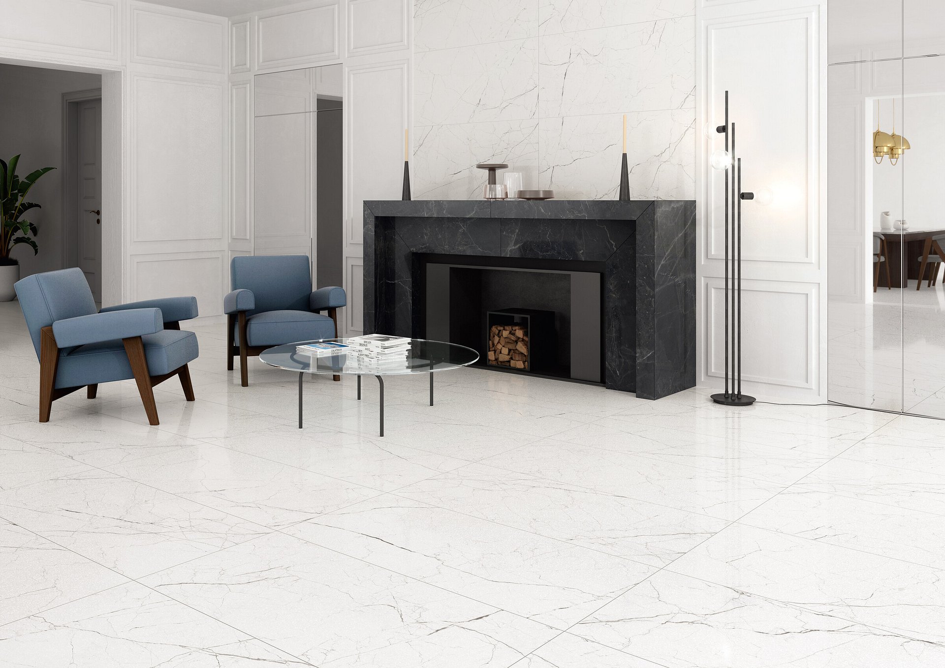 In the Arcadia project, marble-effect porcelain stoneware creates a new style of contemporary interior design based on a selection of precious, evocative varieties in which the strong directional orientation of the veins and intense colour contrasts form an original textural idiom.