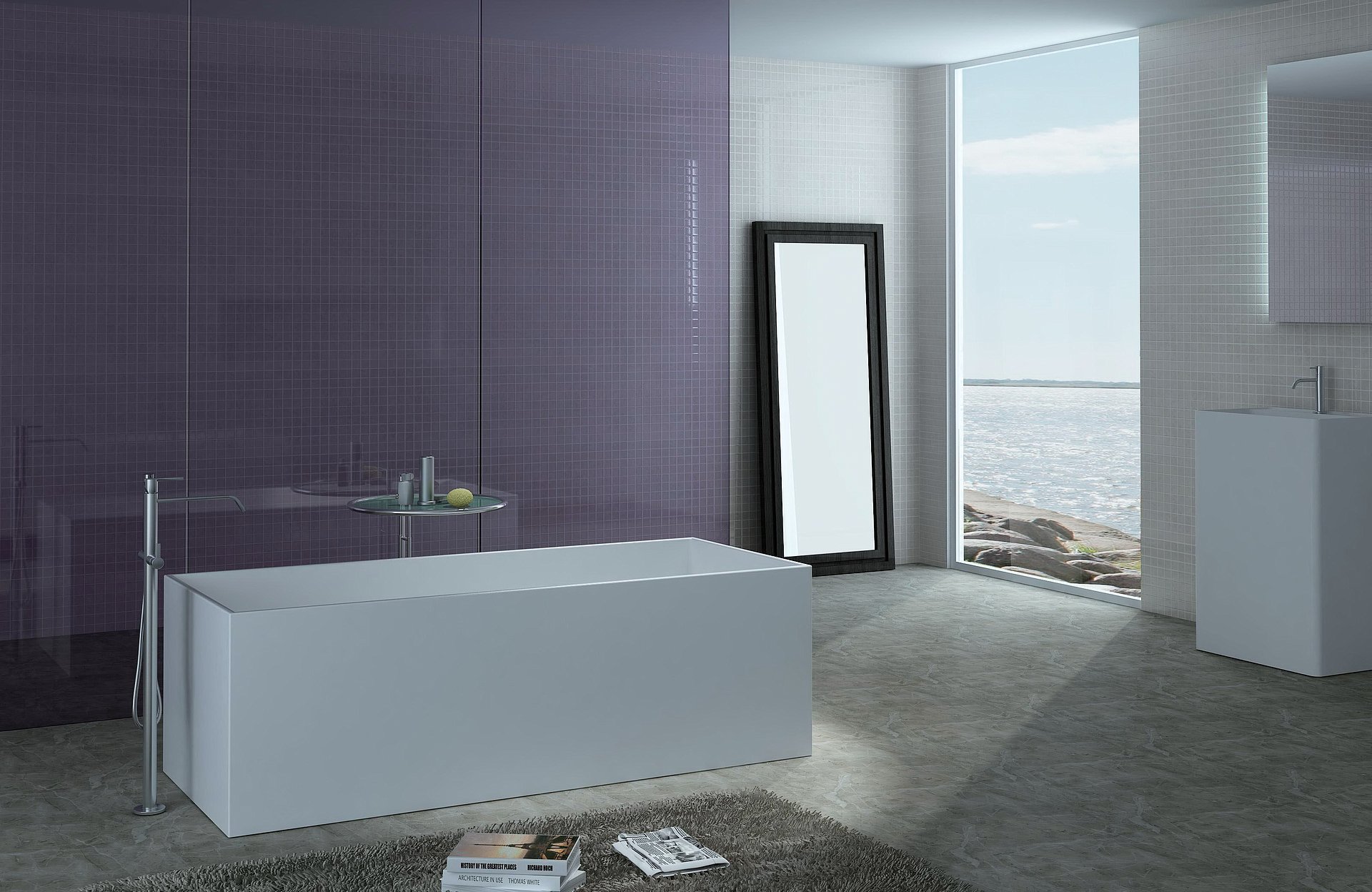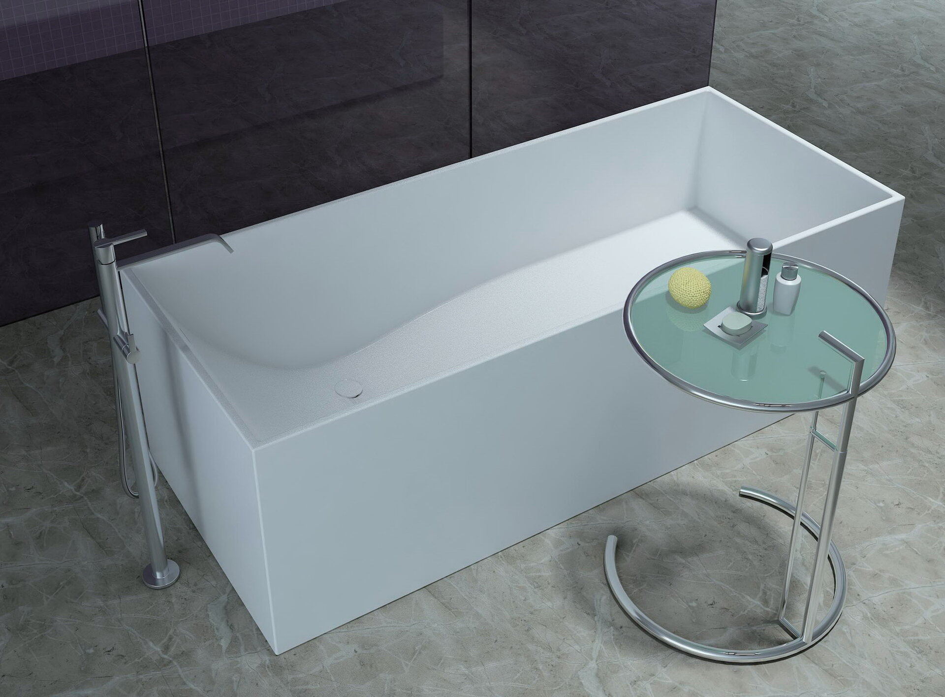 A composite stone bathtub from the Cube collection.