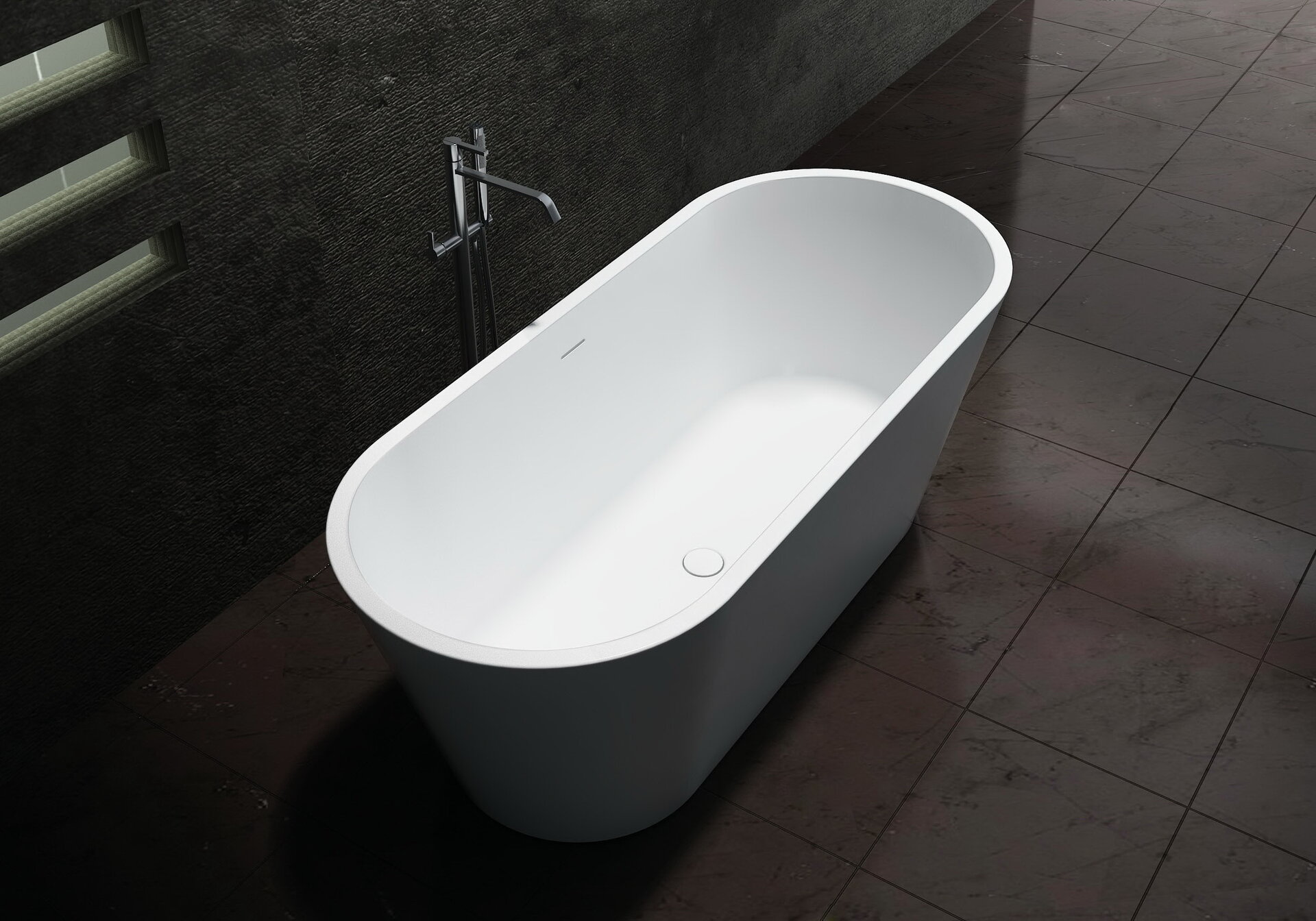 A composite stone bathtub from the Olive collection.