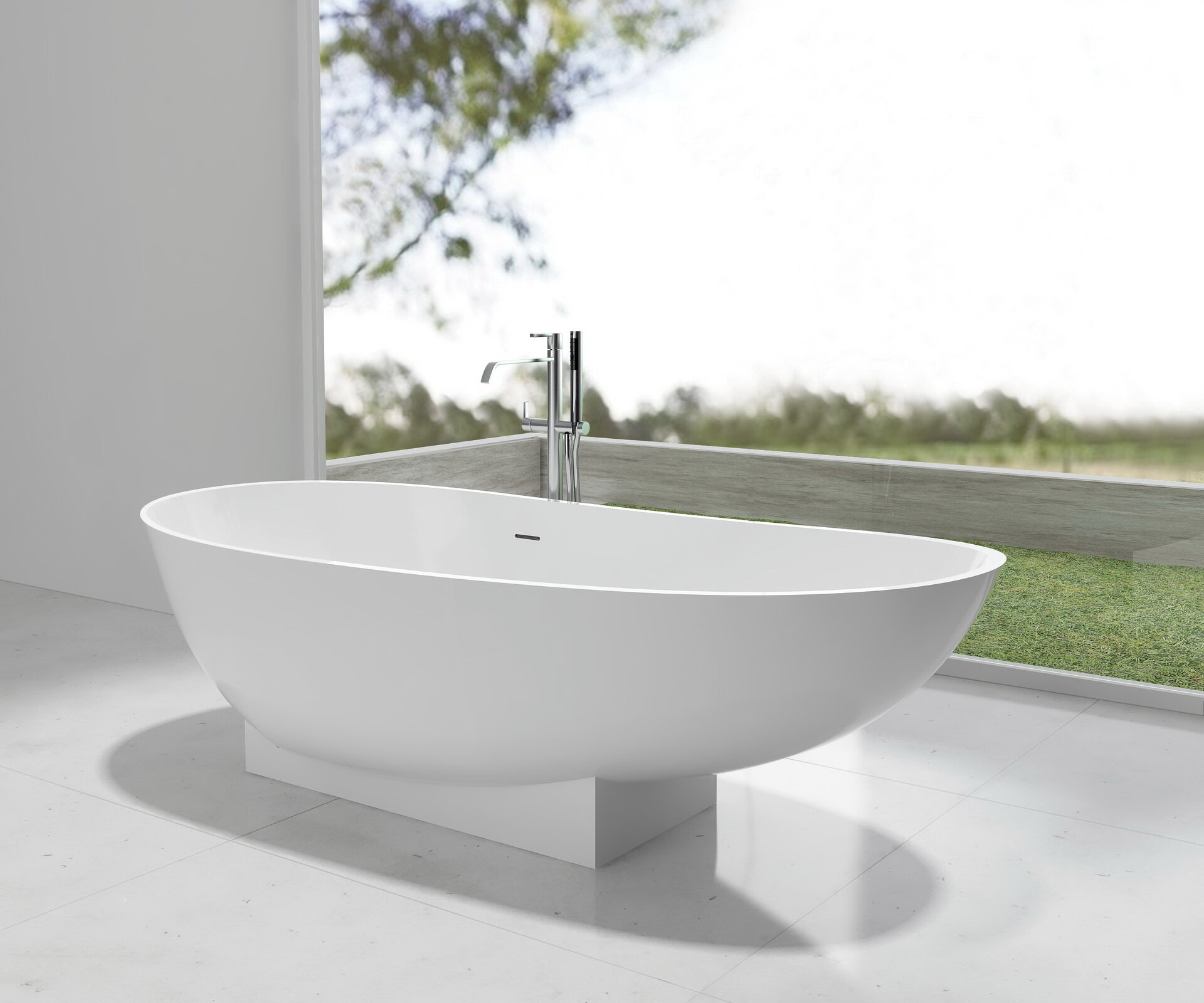 A composite stone bathtub from the Perla collection.
