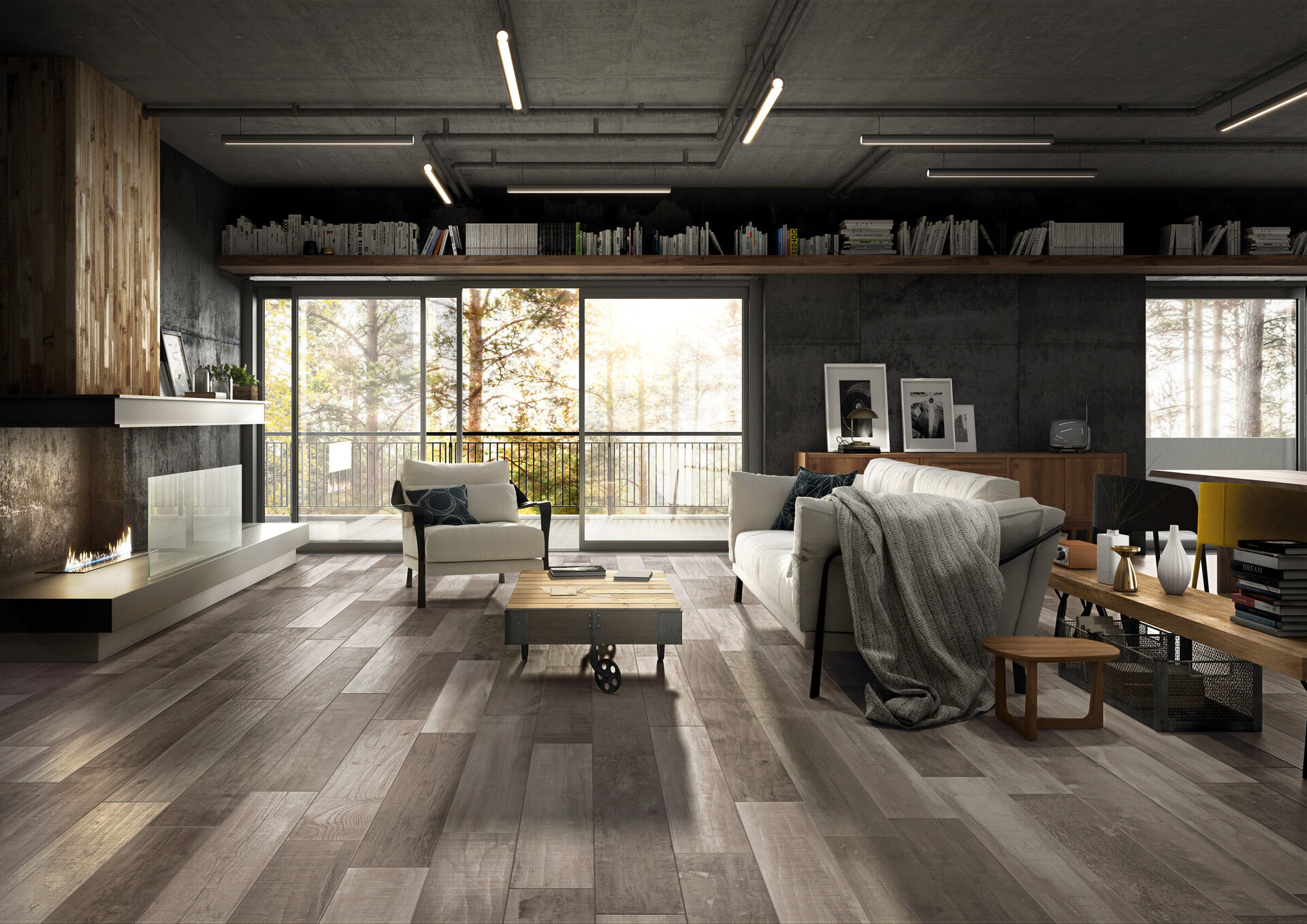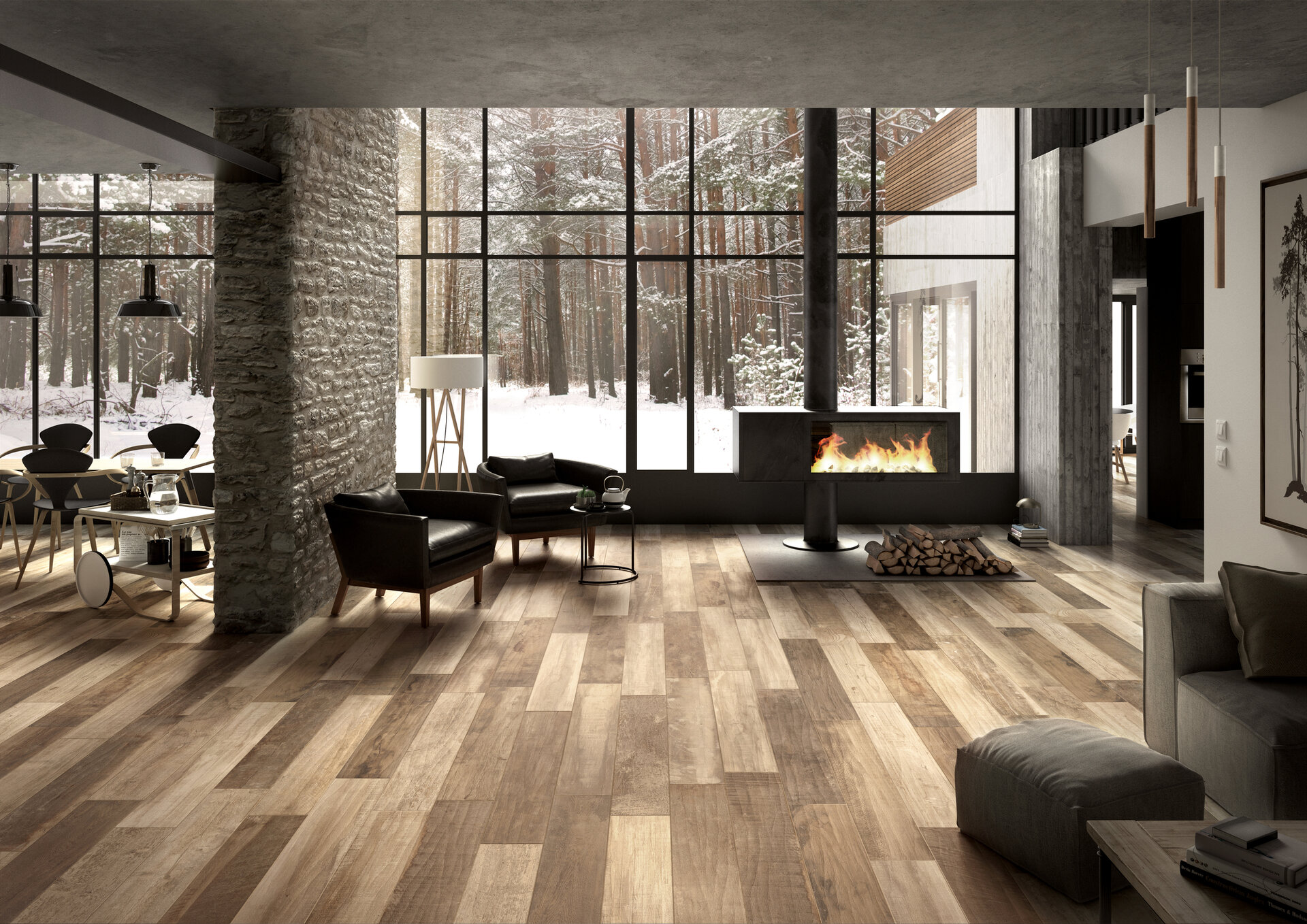 The smell of the countryside, the warmth of the sun or the icy cold of snow, physical contact with wood, with the charming details of its knots, its cracks and nicks, its warm, burnt colours or its colder and more modern hues. Country is an enchanting, welcoming, and incredibly natural wood. The collection is made up of three beautiful shaded colours: Aspen, light and elegant; Creek, warm grey, modern, and trendy; and Vermont, warmer and more elegant tones with strong character. Rich graphics and high-tech manufacturing processes create an incredibly realistic porcelain stoneware product with outstanding technical performance and that is durable and easy to clean.