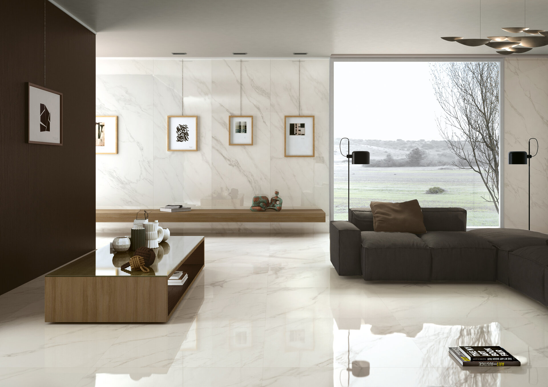 The marble veining is recreated with great precision and with a three dimensionality that conveys extreme visual depth.