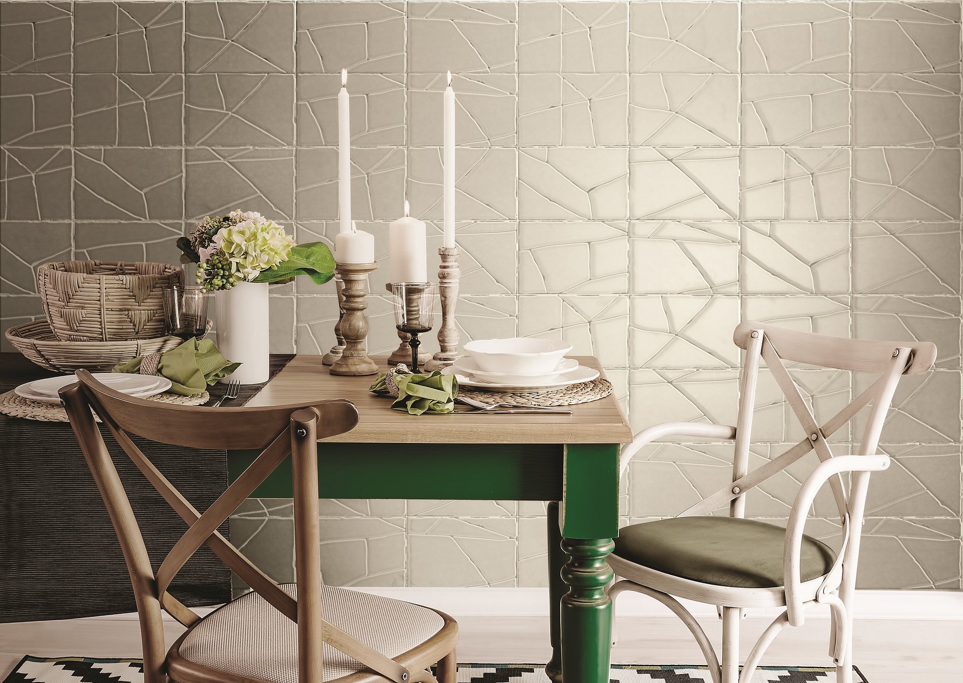 The metal resurfaces from under the glaze, creating natural cracks and chips, just as if the tile was broken and worn: a natural effect, characterized by a strong daring aesthetic, interpreting a new ceramic surface, ranging from modernity and tradition. The collection is developed in 3 colours with 6 different graphics in one single size 20x30cm / 8”x12”.