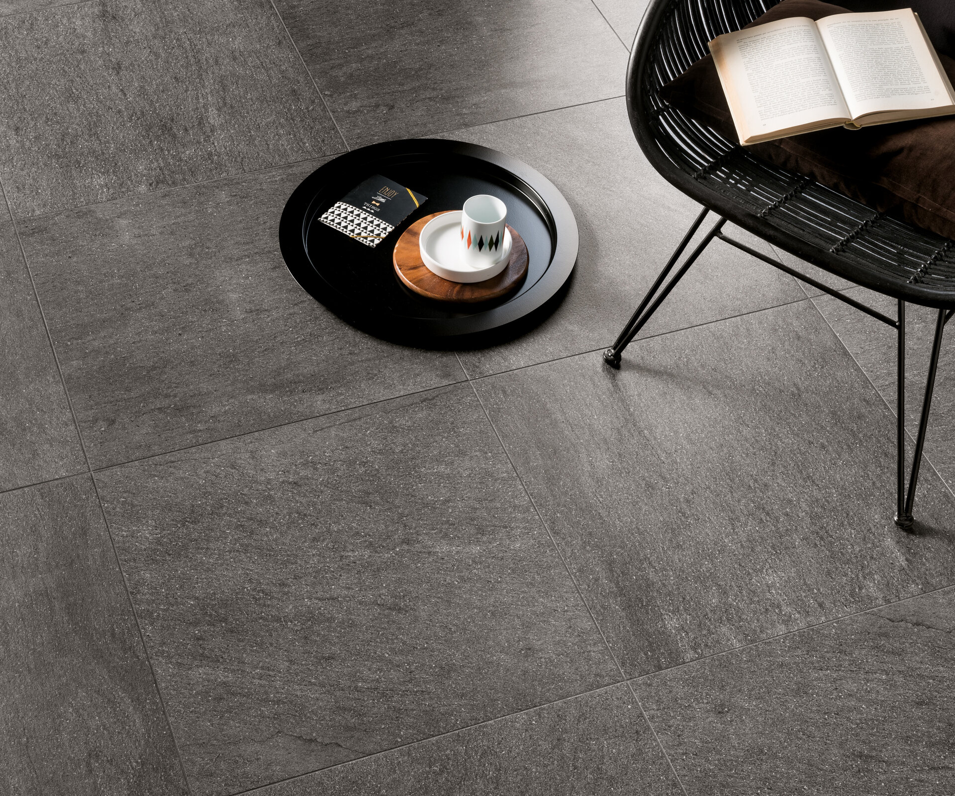 Living Stones is a journey through Europe, in search of the most beautiful natural stones on the continent that Blustyle has selected and presented in a porcelain stoneware tile. We begin our journey on the warm shores of the Spanish Mediterranean from which Light Cream originates, a European Cream limestone of rare beauty and with solar shades. Next, in the heart of France, in Burgundy, surrounded by green hills and streams, slowly formed over the millennia we have Stone Beach, sunset-coloured and with the refined veining of Chamesson limestone. We now head up, eastward, to Wallonia, with Blue Origin we can savour the Nordic elegance of the pierre bleue hidden among dense forests rich in coal and shell sediments. Now we take to the skies, from above, we head south again and soar over the Italian volcanic islands where Basalt Grey originates, magmatic rock with intense lava shades rendered by the cooling process. Four different modern and versatile stones that are imprinted by the nature that generated them and which combine perfectly with contemporary styles.Living Stones is produced in three sizes (90×90, 45×90, 60×60) and three finishes: 10 and 11 mm in versions Naturale and Lappata and the new 20mm in the Grip finish, highly-resistant and non-slip, perfect for any outdoor flooring.