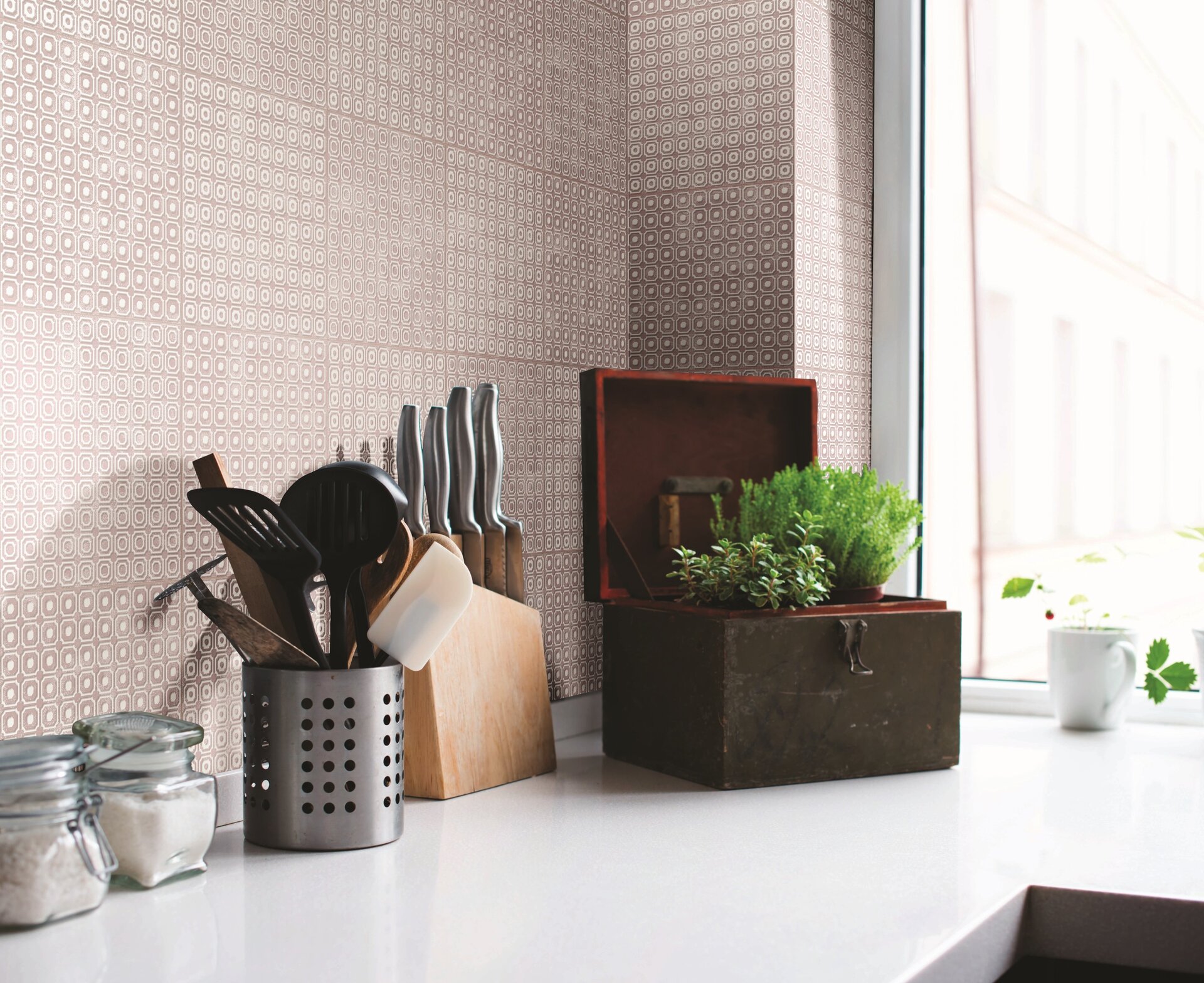 The traditional 20x20 cm / 8”x8” format, in 7 delicate colours in a 3 pattern random mix, is thought for neat and pleasant decorative areas.