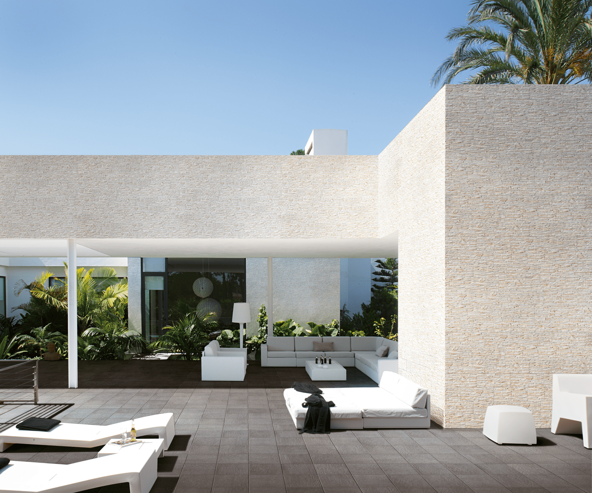 A single shape characterize the porcelain stoneware coverings for exteriors and interiors with a structured surface, which incorporates the nuances and stone-effect textures.