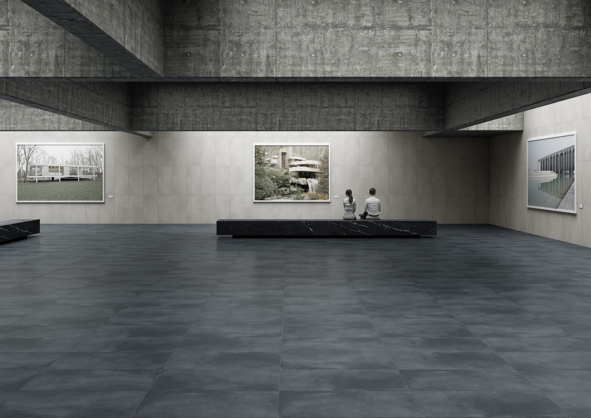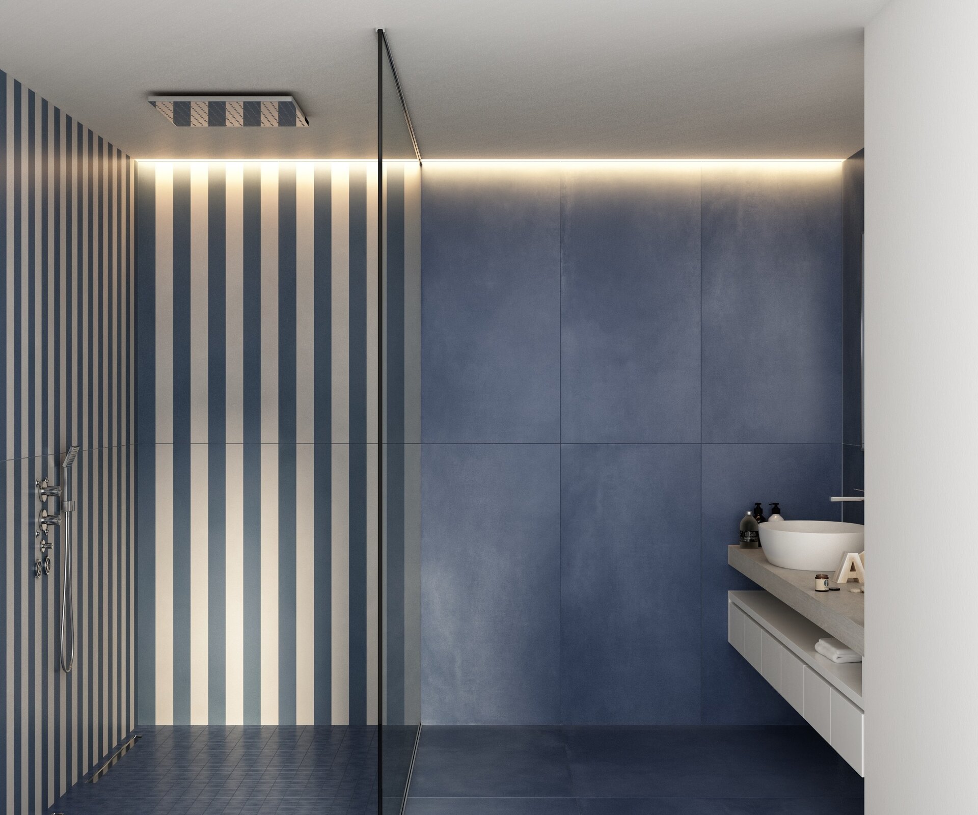 The material: concrete, contemporary, bold, softened by a Nuvolato effect of high aesthetic and chromatic value.