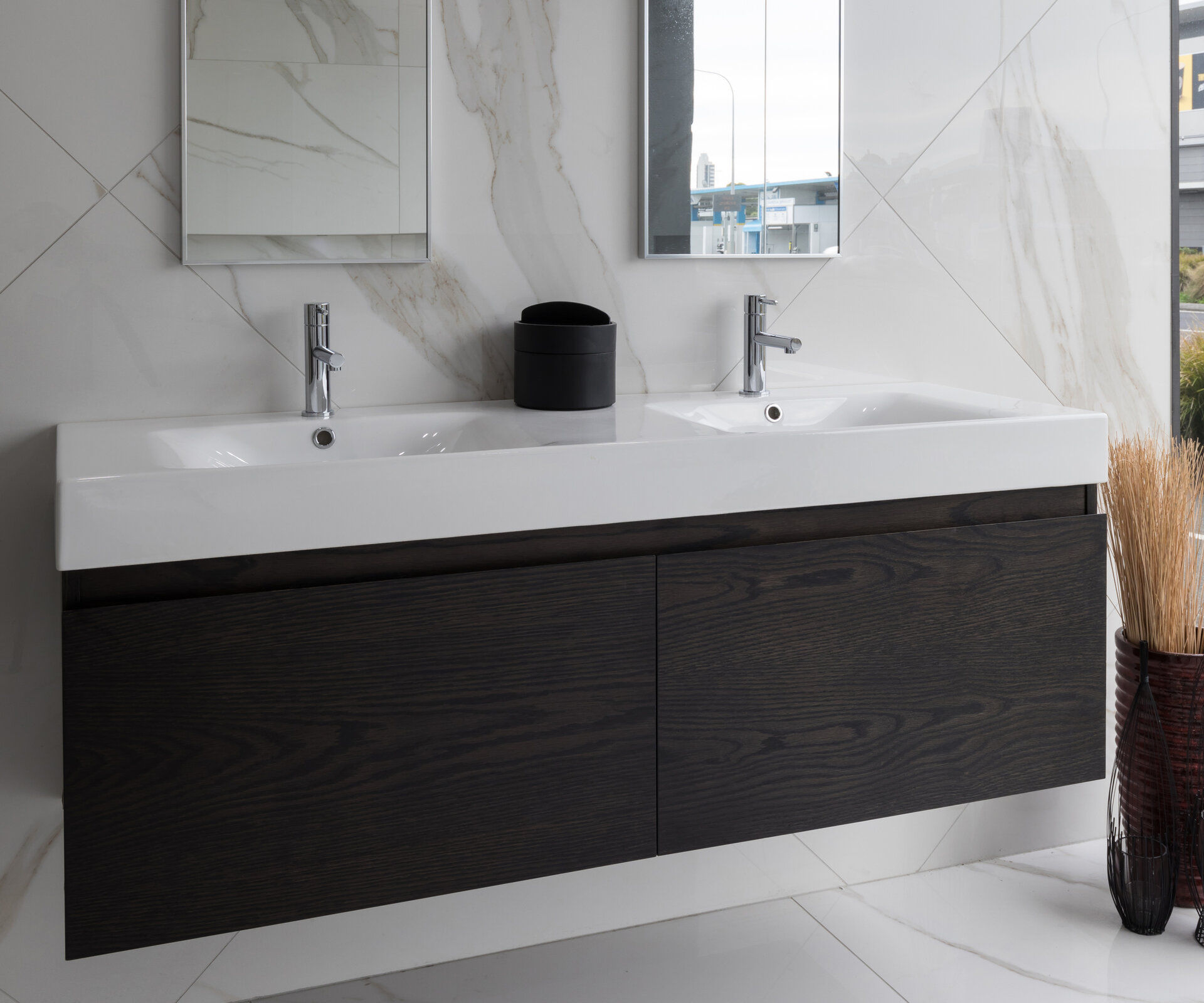 Beautifuly crafted New Zealand Made vanity cabinet. Using a structure of marine grade plywood and quality German made drawer runners in soft-close. Cabinets are pre-made unfinished and painted to order. The oak cabinets can be stained any colour and the lacquered cabinets can be painted in any Resene finish. A few different handle options are also available.