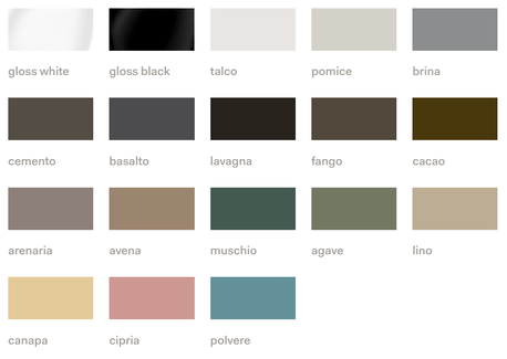 A selection of finishes ranging between the colors of "le Terre di Cielo", lacquers and wooden veneers, metals, marble, leather and all available materials.