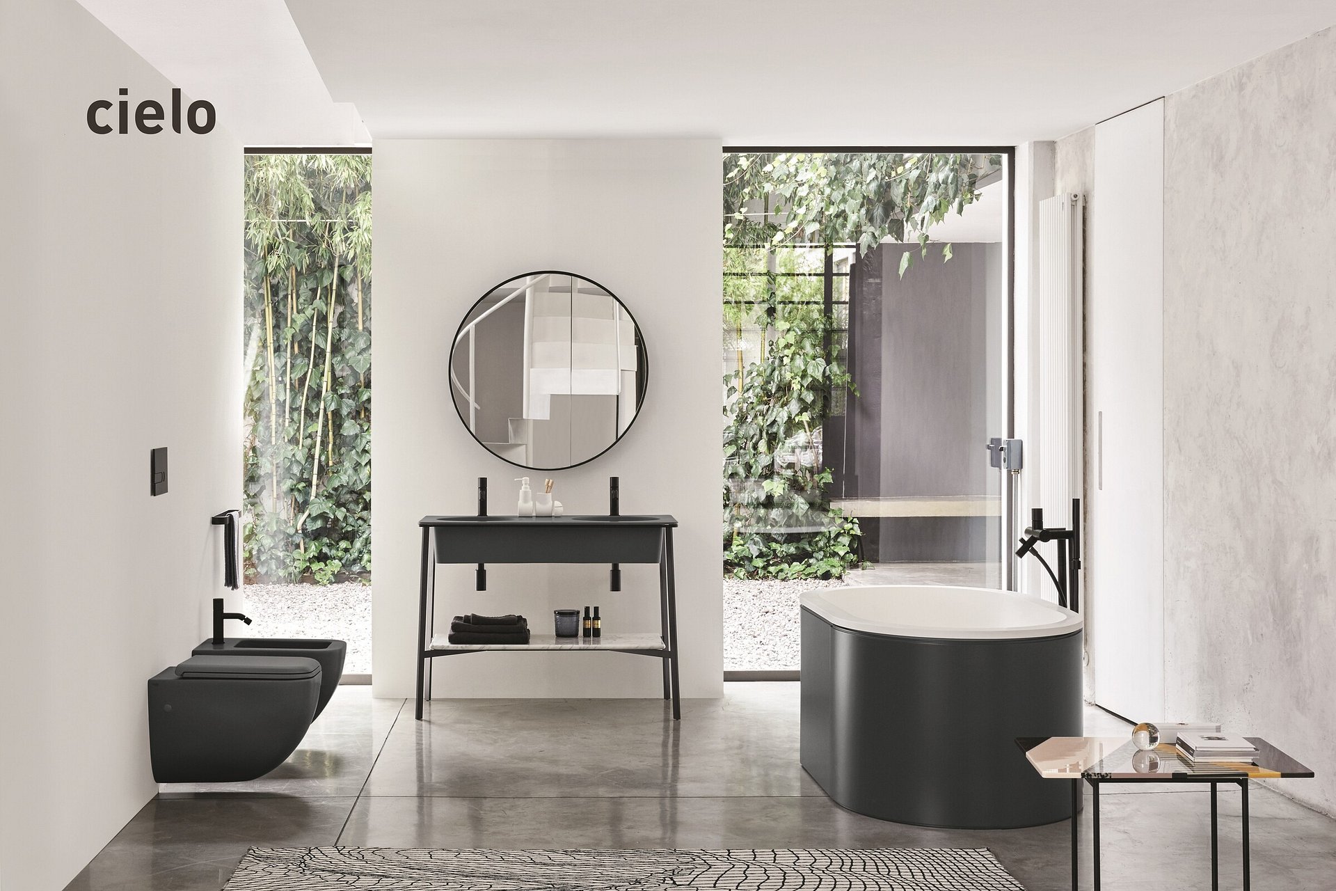 I Catini: the Tondo, the Ovale, the Doppio and the Rettangolare, four different interpretations of same product, which harmonically combines frameworks made of steel with ceramic washbasins and ceramic or marble shelves as well as a convenient storage drawer. Collection is completed with 2 mirrors cabinets, Round and Oval of essential design, and a full range of accessories such as towel rails and holders.