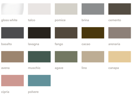 A selection of finishes ranging between the colors of "le Terre di Cielo", lacquers and wooden veneers, metals, marble, leather and all available materials.