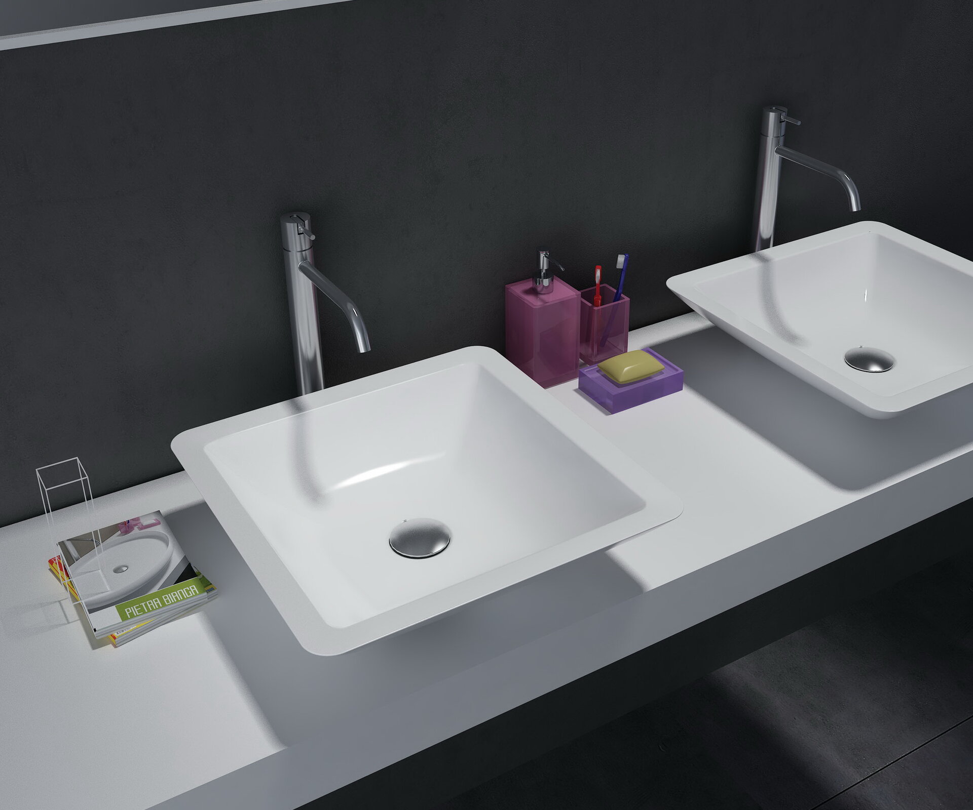 By Plano is the new Plano collection of simple and stunning design washbasins made of composite stone.