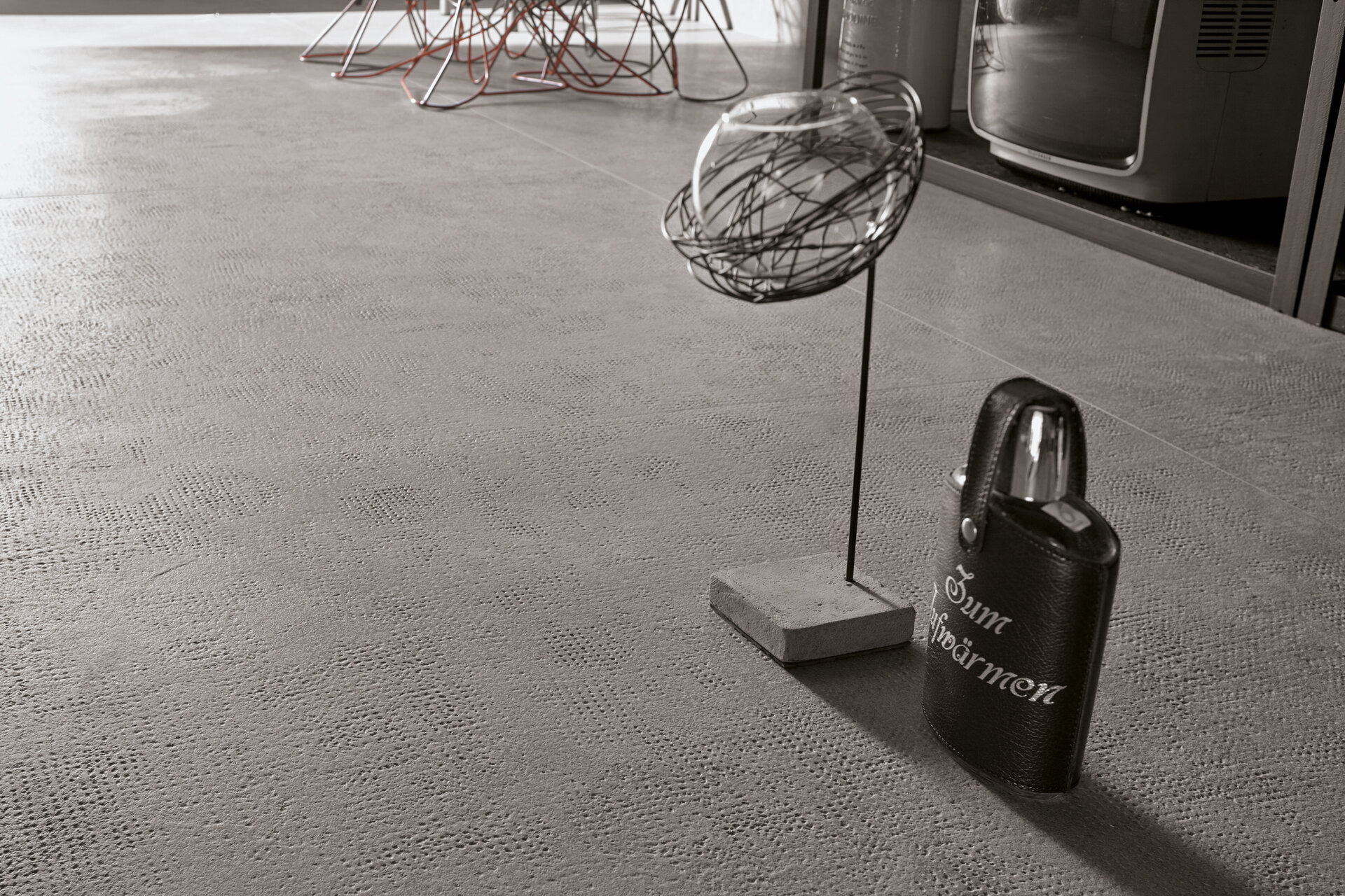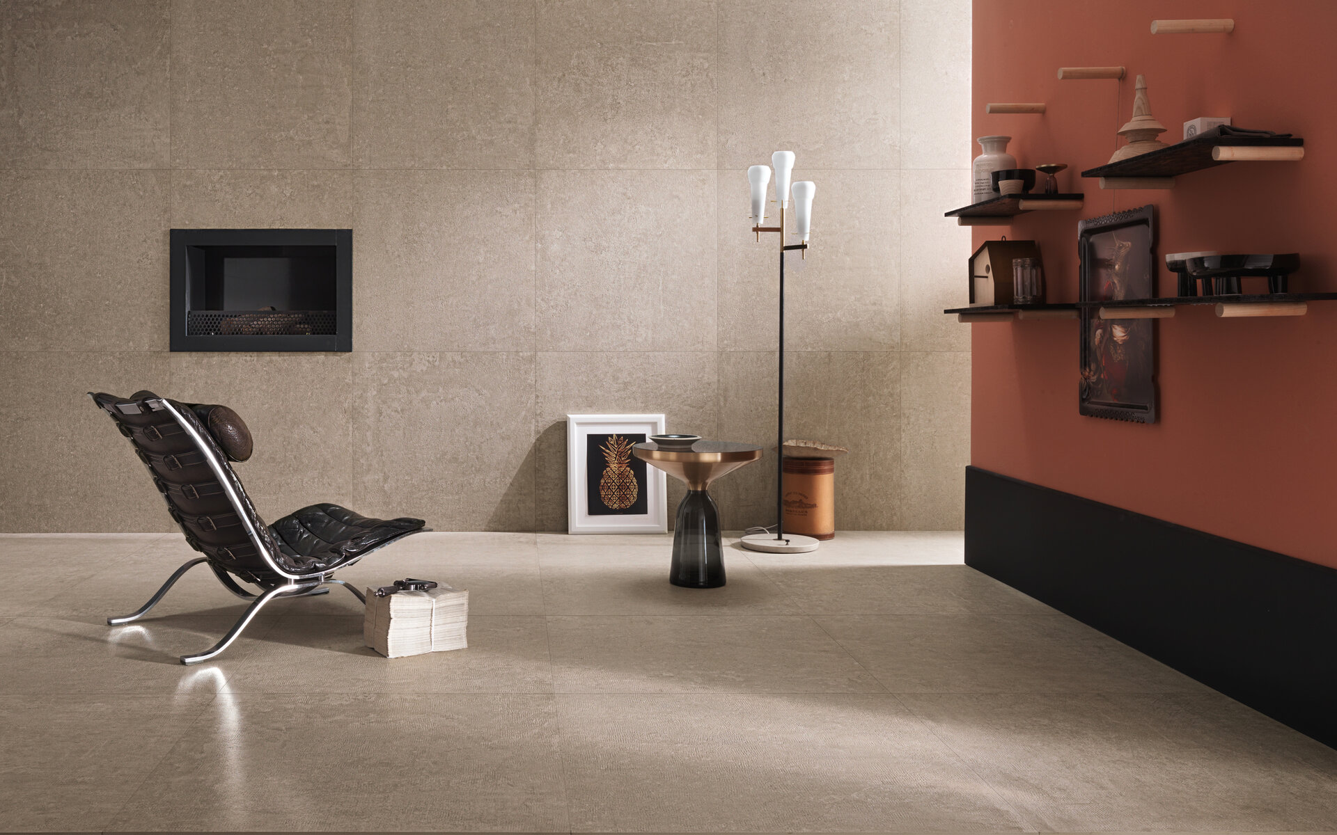A surface inspired by rolled cement. Texture and colours that are perfectly in sync with the trends of modern architecture.