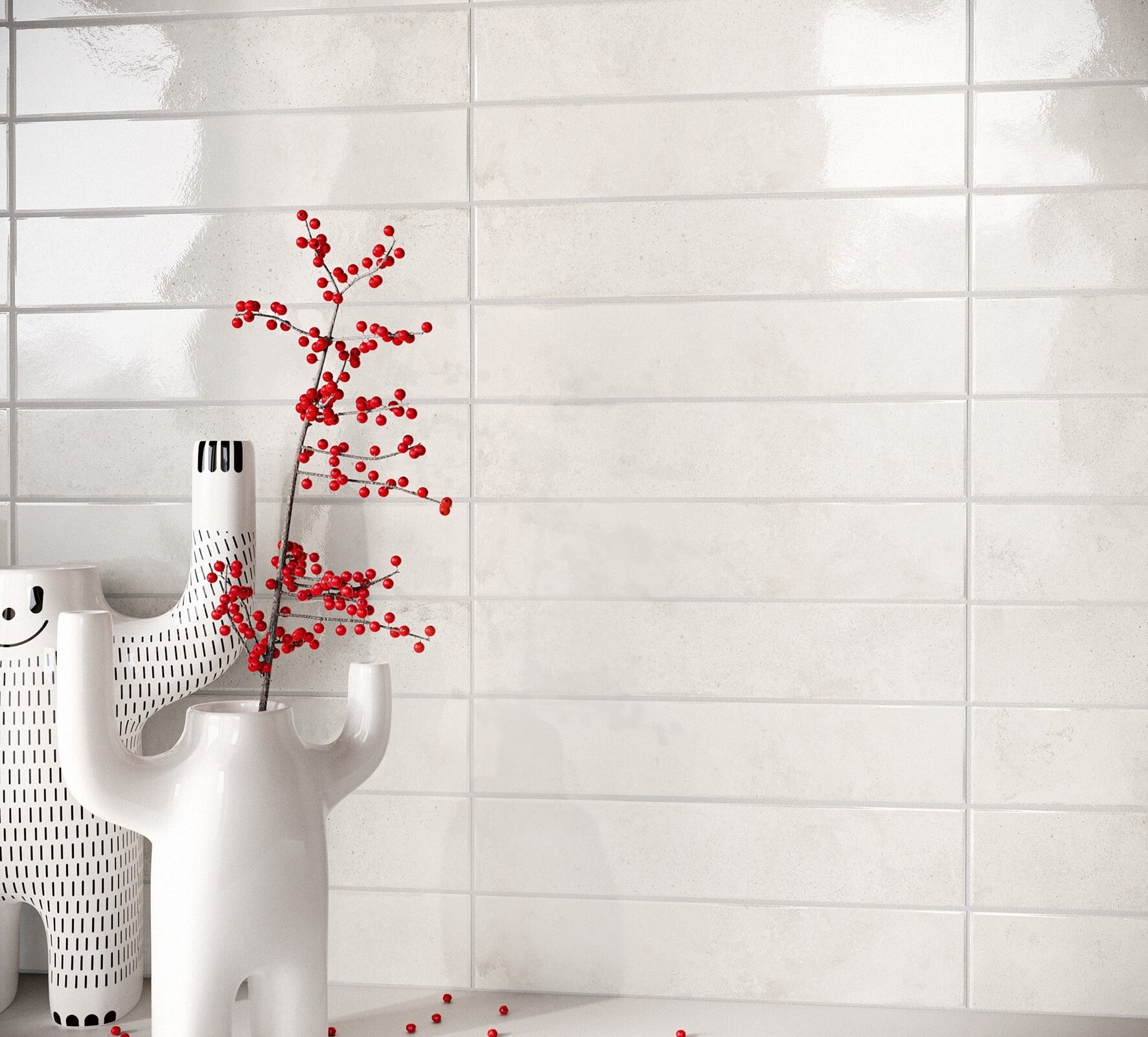 These effects are accentuated by the special slightly wavy surface and by raised edges that gives back the uniqueness of the handcrafted imperfections. This helps to intensify the sensation of movement and brilliance. The collection is enriched by the Bloom decoration, characterized by hand-painted leaves that are lightly imprinted on the white surfaces.