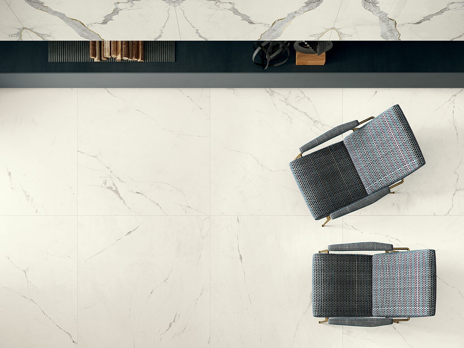 Like for an Italian Renaissance sculpture, Cotto d'Este has searched for the finest marbles and surfaces, making the veins a subtle feature of the large thin slabs.