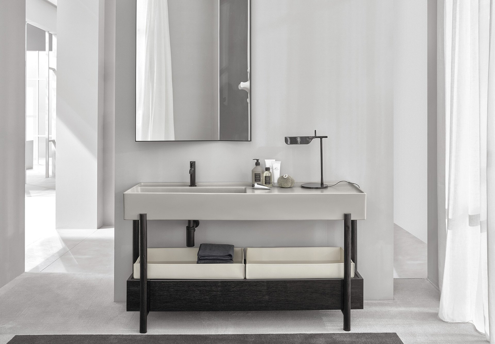 Plinio, the unusual “extra-large” washbasin, designed by, which with the purity of its geometries determines a modern way of living for the bathroom, designed as a place for precious rituals. Capable of adapting to different tastes and needs, Plinio is an example of a perfect balance of rigorous proportions in harmony with the always winning concept of functionality. The stylistic feature of this model is the essential beauty and generosity of the forms able to create unique atmospheres and proposals.
