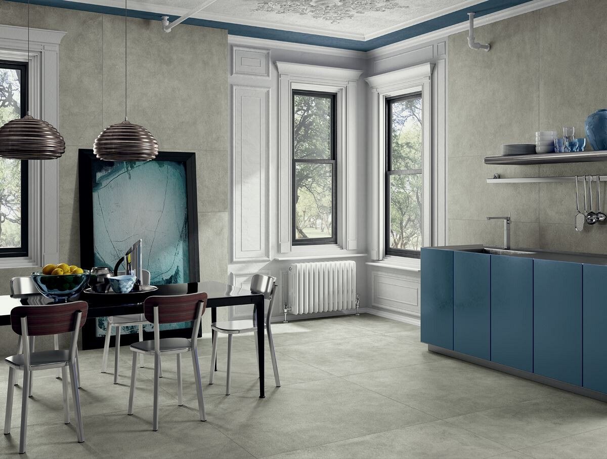 Grunge is a truly different and authentically unique ceramic concrete. It boasts a harmonious aesthetic appeal both in its colour transitions and in its graphic texture, which is evocative, yet always balanced and refined, translating the unmistakable character of raw cement into elegant and highly realistic ceramic surfaces that faithfully reproduce its imperceptible roughness.